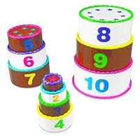 I purchased this for my granddaughter who is just shy of 2 years old. She played for it for hours! She loved stacking them and then taking them apart and stacking them inside each other or a combination of both. Every time she stacked them high she'd squeal "Big Cake!" She recognizes her numbers already so even if she'd stack them out of numberical order she'd turn the cake until she could see the number and say what number was on it out loud while stacking it. This is a great toy for number recognition as well as learning colors and coordination. Definitely reccommend it!It has now been 2 years since I purchased this. To this day it is my granddaughter's favorite toy at Mema's house. Today is Christmas 2012 and she is playing with them over her new gifts.