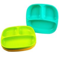 These plates are amazing. Other bowls and plates werent doing the trick. I saw these on Amazon, and figured I would give them a try. The sections are deep, so my 16 month old can use her spoon and get the food out without pushing the food out of the sections and all over herself. The plates are thick plastic and very durable. I had only purchsed the one 3 pack, but I just got on today and ordered more so we can use them with every meal. They are a great price and worth the money!!! I cant wait to see what other products this company has to offer!!!These are recycled milk jugs. Pretty neat. I like that these are deeper so my daughter can spoon her foods better. Love the colors too!Great price, great product, and my kids love them. The plates are deep enough to put cereal in and hold just the right amount of food, and my kids love the colors. If you are going to wash them in the dishwasher make sure you only put them on the top shelf. Besides that these are great and I would definitely recommend them. Also, the silverware from Re-Play is just as good!Re-Play 3 Count Divided Plates