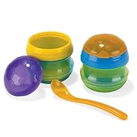 I adore these beautiful little food containers. They are thick and sturdy with a tight-fitting screw-on lid. Perfect for traveling or sending baby to daycare with homemade baby food.Read Best Reviews of Sassy Insulated Feeding Pots with Spoon Here