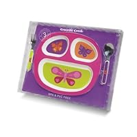 Crocodile Creek Divided Plate Three Piece Set. One Beautifully Illustrated Plate, Fork And Spoon. -